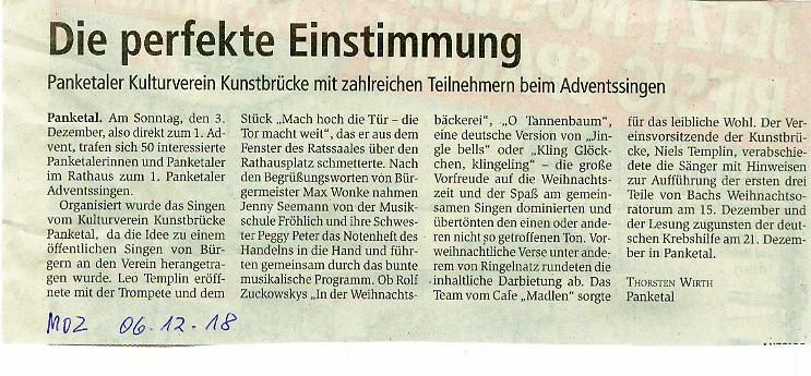 Advent- und Weihnachtssingen 02. Dezember 2018