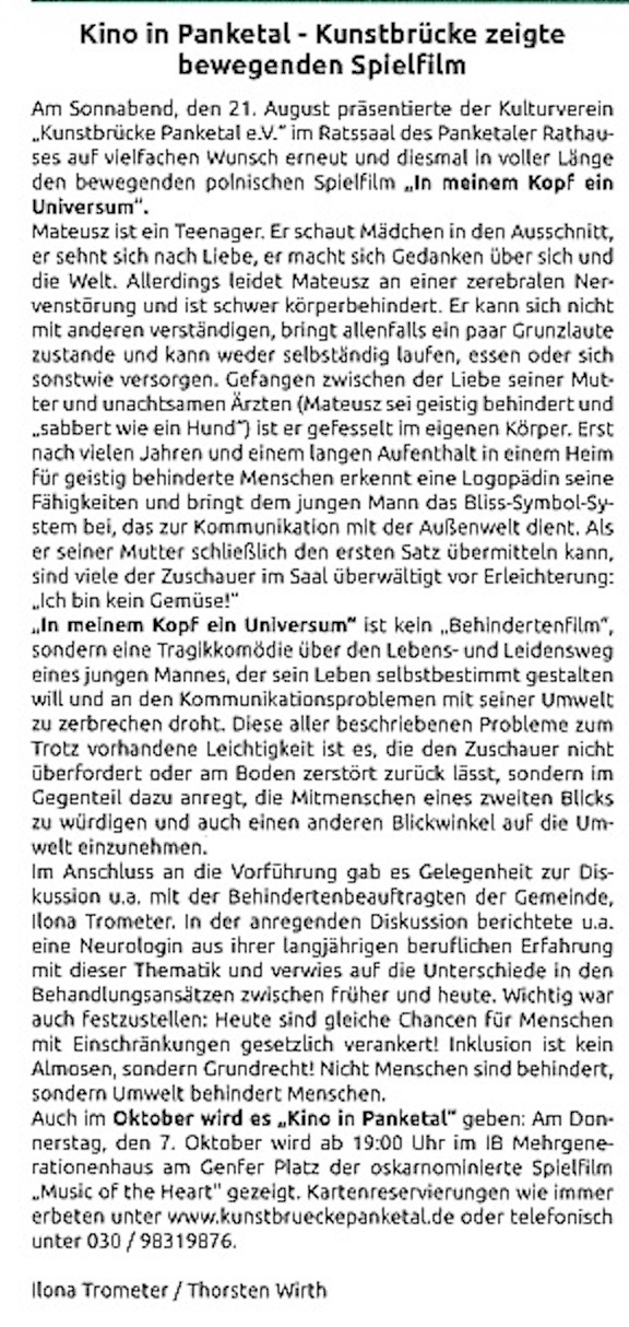 Kino in Panketal "In einem Kopf ein Universum"