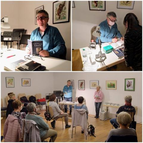 Die gut 20 Gäste unserer letzten Kulturveranstaltung  vor dem zweiten Corona-Lockdown lauschten dem Berliner Künstler dankbar und mit sichtlichem Vergnügen.