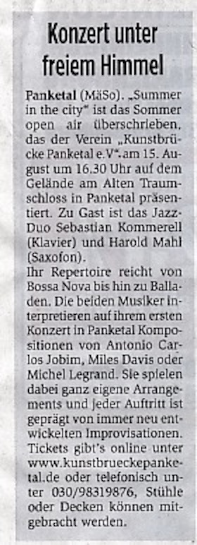 OPEN AIR Summer in the City mit dem Jazz-Duo Kommerell / Mahl