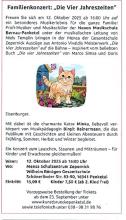 Der Verein Kunstbrücke Panketal e.V. lädt nach längerer Pause wieder zu einem besonderen Familienkonzert ein. Am Sonntag, den 12. Oktober 2025 um 16:00 Uhr, erklingen in der Mensa des Schulzentrums Zepernick Auszüge aus Antonio Vivaldis berühmtem Meisterwerk „Die vier Jahreszeiten“ – kind - und familiengerecht inszeniert.