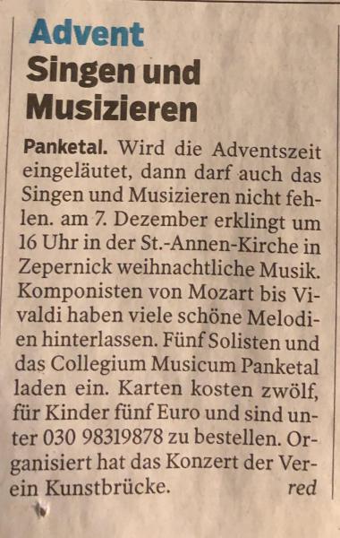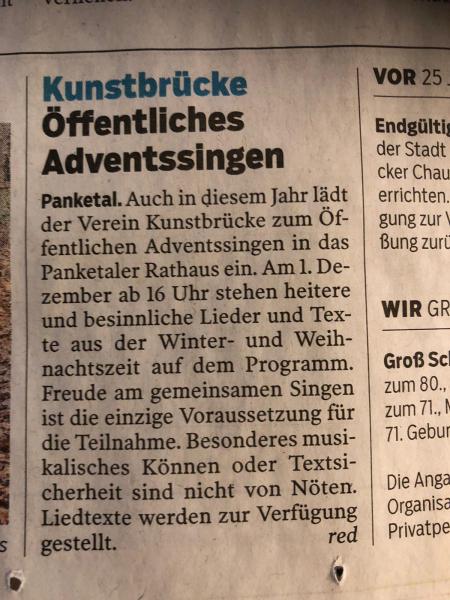 Artikel Märkischer Sonntag 30.Nov./01.Dez. 2019 |