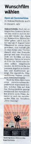 Open air Sommerkino 2024 in Hobrechtsfelde: Jetzt Wunschfilme wählen!
